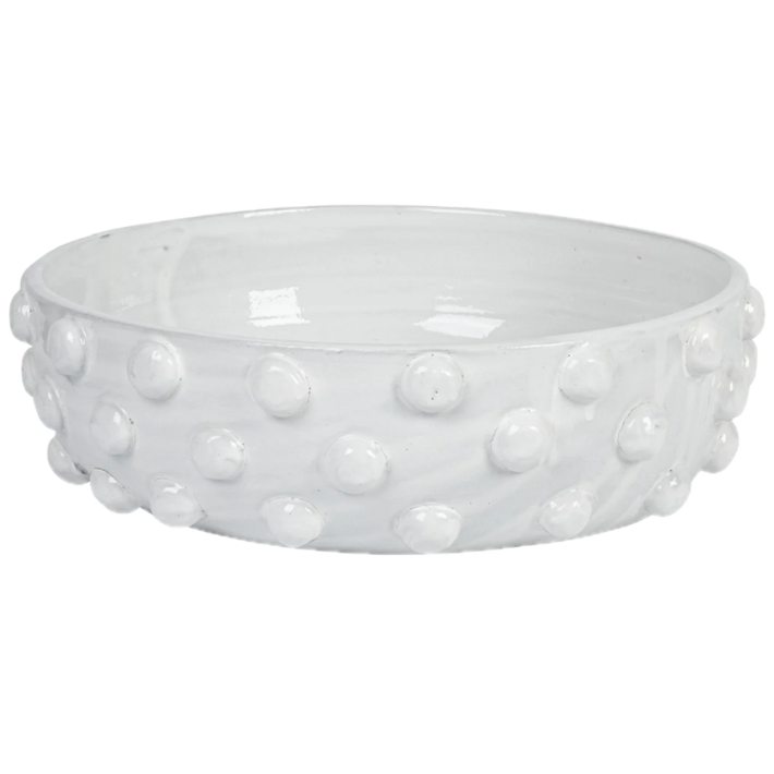 Item: Decorative Terra-cotta Bowl with Raised Dots, White